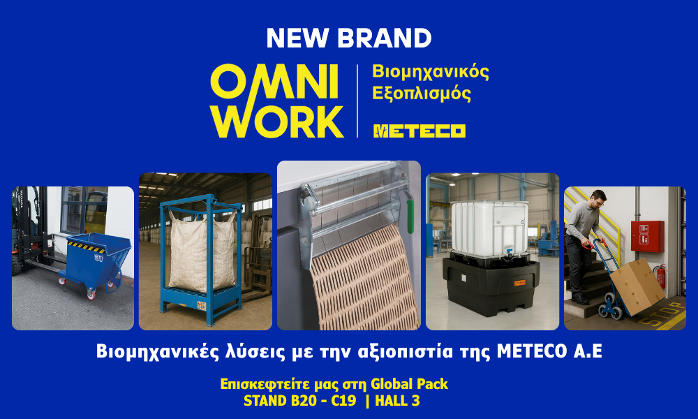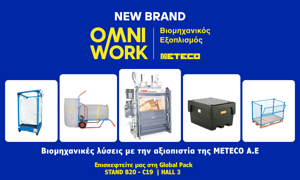 Η OMNIWORK by METECO αποτελεί τη φυσική εξέλιξη της εμπειρίας της METECO Α.Ε. στον τομέα του βιομηχανικού εξοπλισμού, συγκεντρώνοντας προϊόντα υψηλής ποιότητας για ανύψωση, μεταφορά φορτίων, αποθήκευση, αντιρρύπανση και διαχείριση ανακυκλώσιμων υλικών. Δημιουργήθηκε για να καλύψει τις πραγματικές ανάγκες των σύγχρονων επιχειρήσεων, προσφέροντας βιώσιμες λύσεις που εξασφαλίζουν λειτουργικότητα, διαχρονική αντοχή και βιωσιμότητα σε κάθε στάδιο της παραγωγικής διαδικασίας.